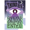 Black pin badge with white inlay. Has the name Beetlejuice in the middle with a detailed frame around. With a double pin back that has rubber plugs for comfort