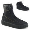 1 1/2" (38mm) Platform Rubber Sole High Top Round Toe Lace-Up Front Creeper Sneaker Featuring Cuffed Snap Collar and Buckle Heel Strap w/ Stud Embellishments