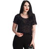 Introducing the Sora Half and Half Top – a playful blend of edgy and cute in one stylish piece! This crop top features a unique design, with one side in classic black and the other in charming lavender, both adorned with a cute mesh skull fabric. The Sora top effortlessly combines a touch of rebellion with a dash of sweetness, making it a must-have for fashion-forward individuals.