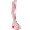 5" (127mm) Star Cutout Platform Wedge Lace-Up Stretch Thigh-High Boot Featuring Mini Iridescent Glitter on the Entire Platform Bottom, Full Length Outside Metal Zip Closure