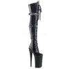 10" (25.4cm) Heel, 6 1/4" (15.9cm) Platform Stretch Lace-Up Front Thigh High Boot with Triple Buckled Straps, Full Length Inside Zip Closure