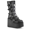 5 1/2" (140mm) Platform Mid-Calf Boot Featuring 5 Buckle Straps w/ Heart Shaped Metal Plates at Center, Back Metal Zip Closure