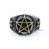 Gold Pirate Skull Crossbones Swords on Black Circle Two Tone Stainless Steel Men's Ring.
