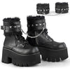 3 1/2" (90mm) Chunky Heel, 2 1/4" (57mm) Cut-Out Platform Heart Eyelet Lace-Up Ankle Boot Featuring Fur Lined Adjustable Removeable Ankle Cuffs W/ Heart Studs, D-Ring & Chain w/ Swivel Snap Hooks Details, Metal Side Zip Closure