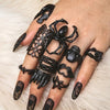 An intricate, floriate styled pewter ring with a central heart, filled with translucent red enamel.